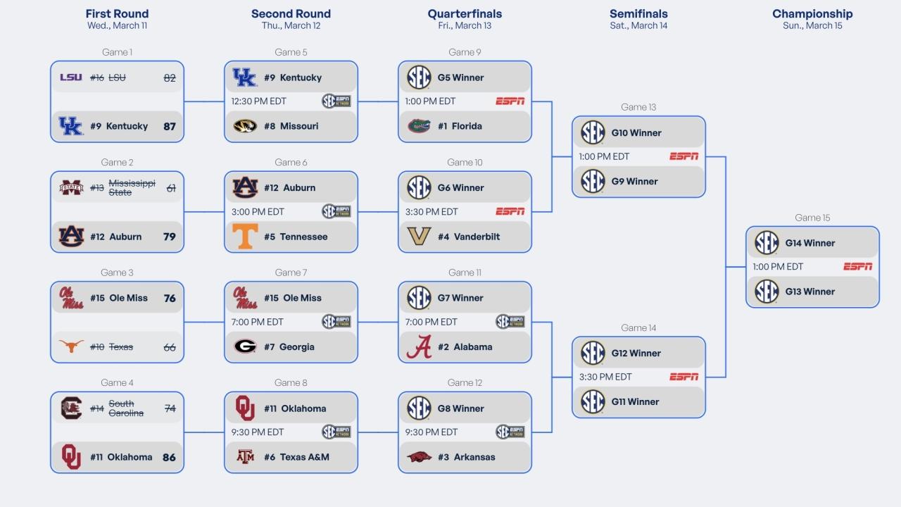 2026 SEC tournament schedule, scores