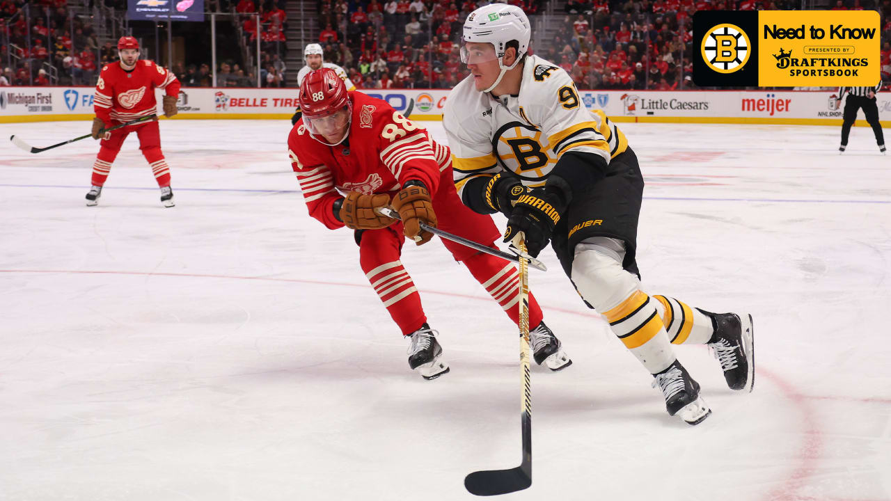 The 8 p.m. puck drop marks the fourth and final time the teams will meet this regular season. The Bruins beat the Red Wings 3-2 on Nov. 29 and 3-0 on Jan. 13; they lost 5-4 on Dec. 2.
